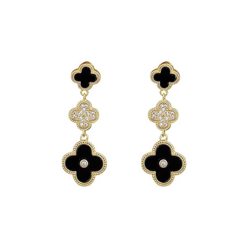Add a touch of sophistication and charm with the Four-Leaf Clover Black and White Earrings. Inspired by the timeless symbol of luck, these earrings feature a stylish black-and-white contrast that complements any outfit.