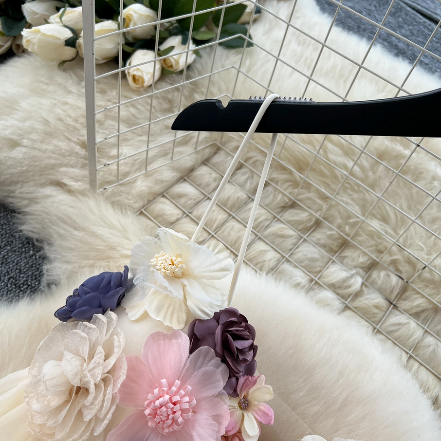Experience whimsical romance with this breathtaking maxi dress featuring dimensional 3D floral embellishments in soft pink, purple, and cream tones, delicate tulle overlay, dreamy off-shoulder sleeves, and flowing floor-length silhouette. Perfect for garden parties, summer weddings, and outdoor celebrations, this show-stopping dress combines textured floral details with ethereal tulle construction, designed to make you look absolutely magical whether you're attending outdoor events, proms, or creating unforgettable occasion looks.