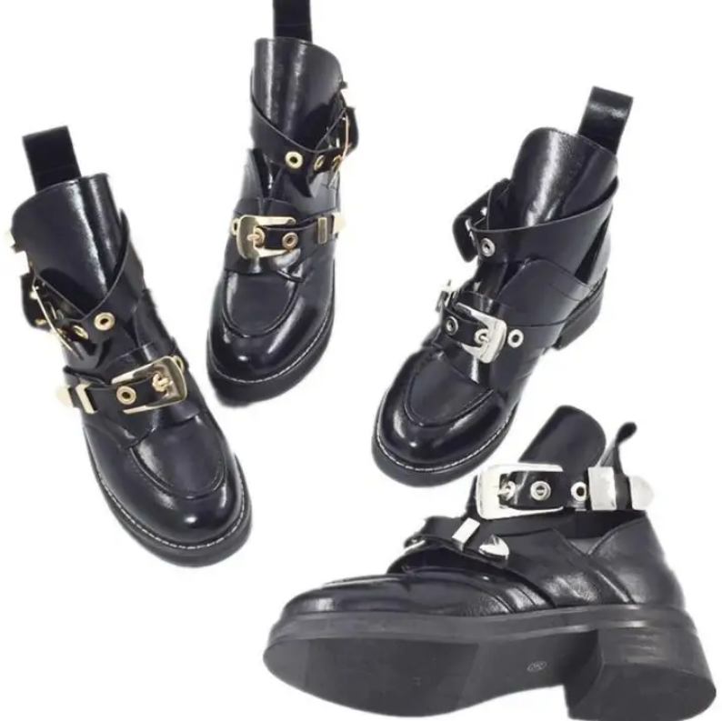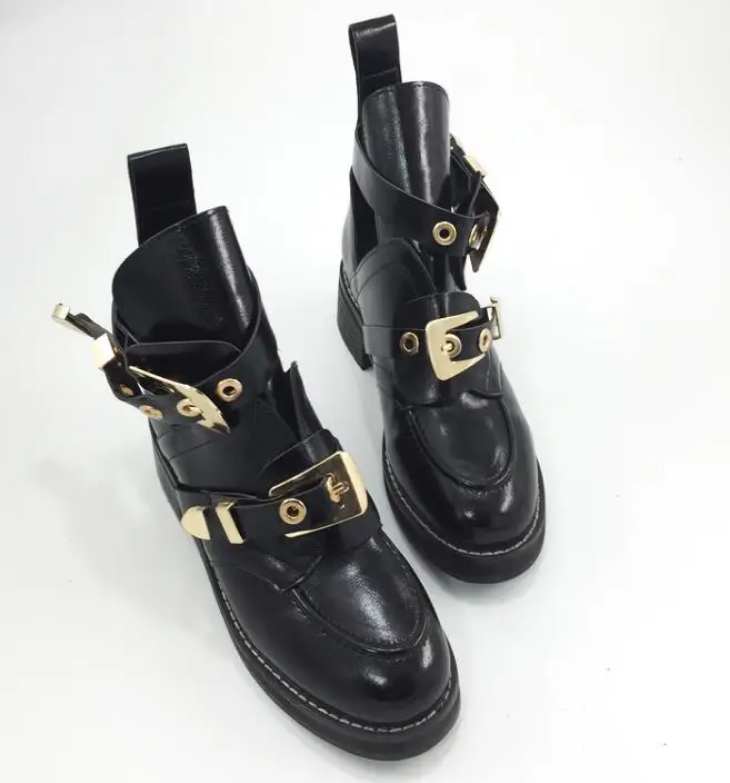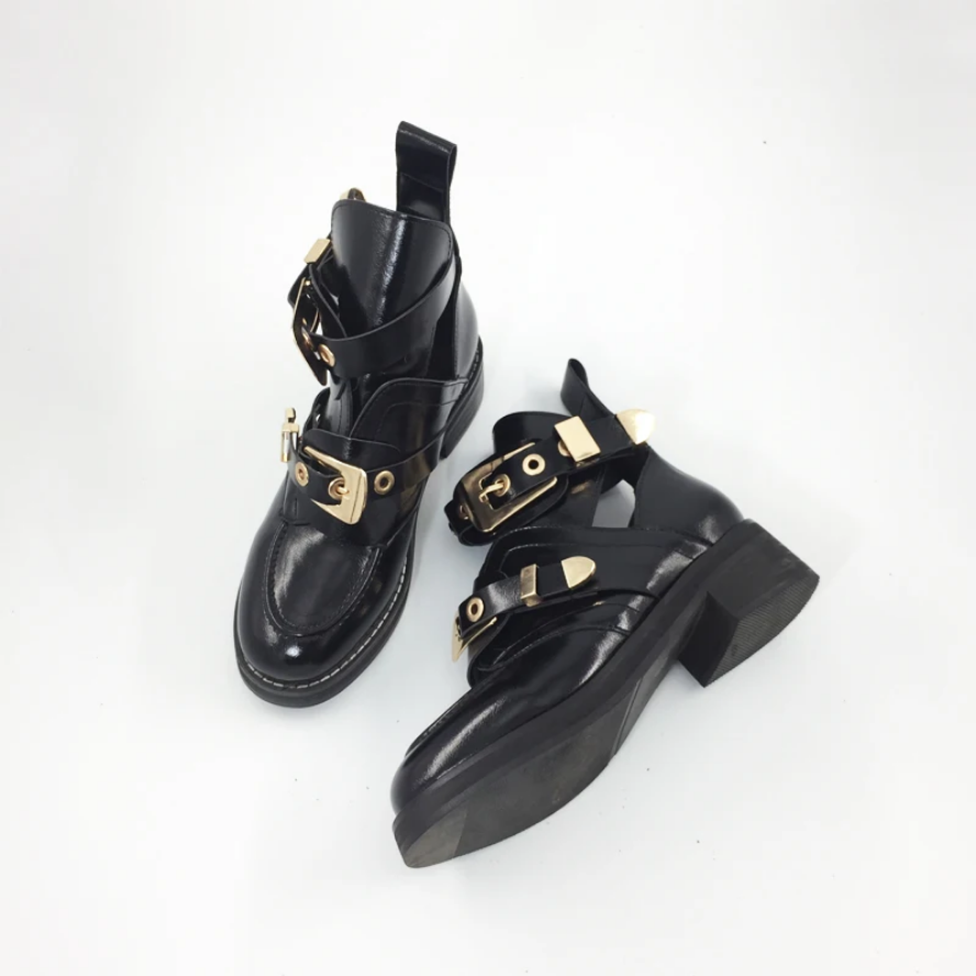 Step up your style with these Cut-Out Leather Ankle Boots for women. Designed with edgy gold and silver buckle hardware, these versatile boots combine comfort with modern fashion—perfect for casual, streetwear, or night-out looks.