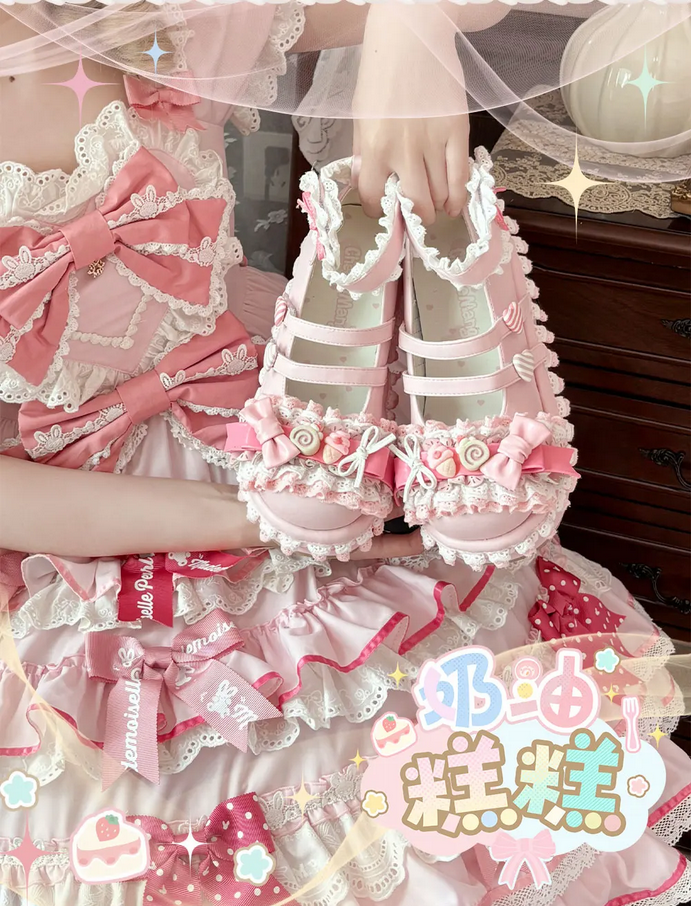 Dreamy Sweet Lolita Platform Shoes with Rose & Lace Details