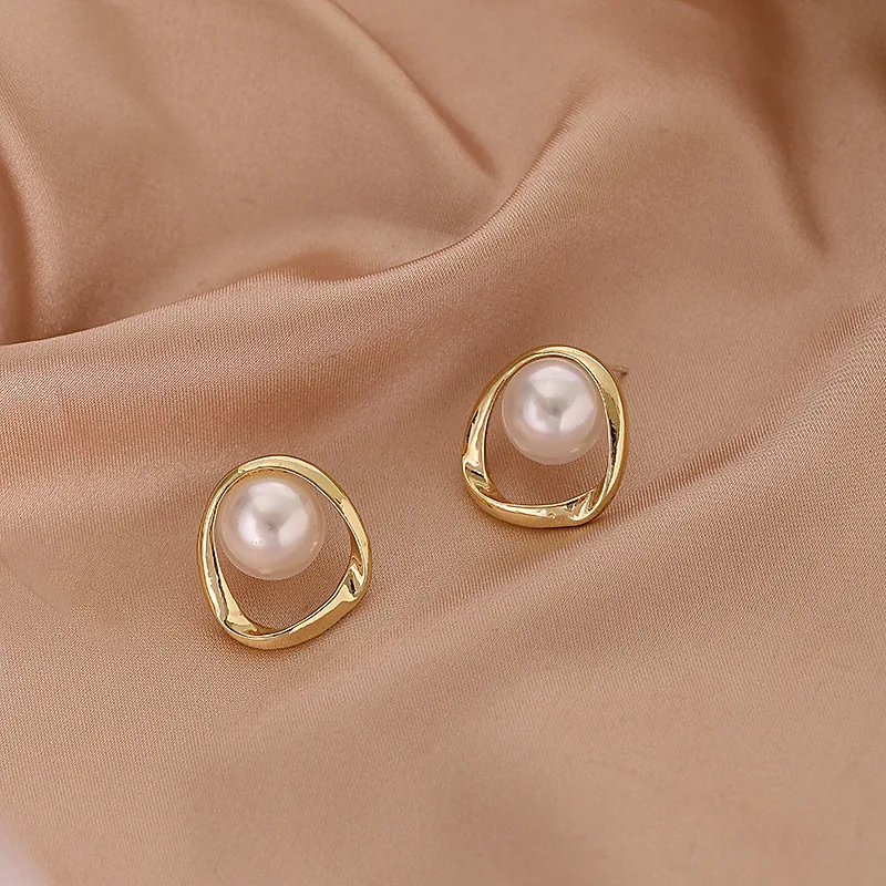Timeless gold round pearl stud earrings for women. Elegant imitation pearls with a sophisticated finish—perfect for weddings, parties, and everyday wear.