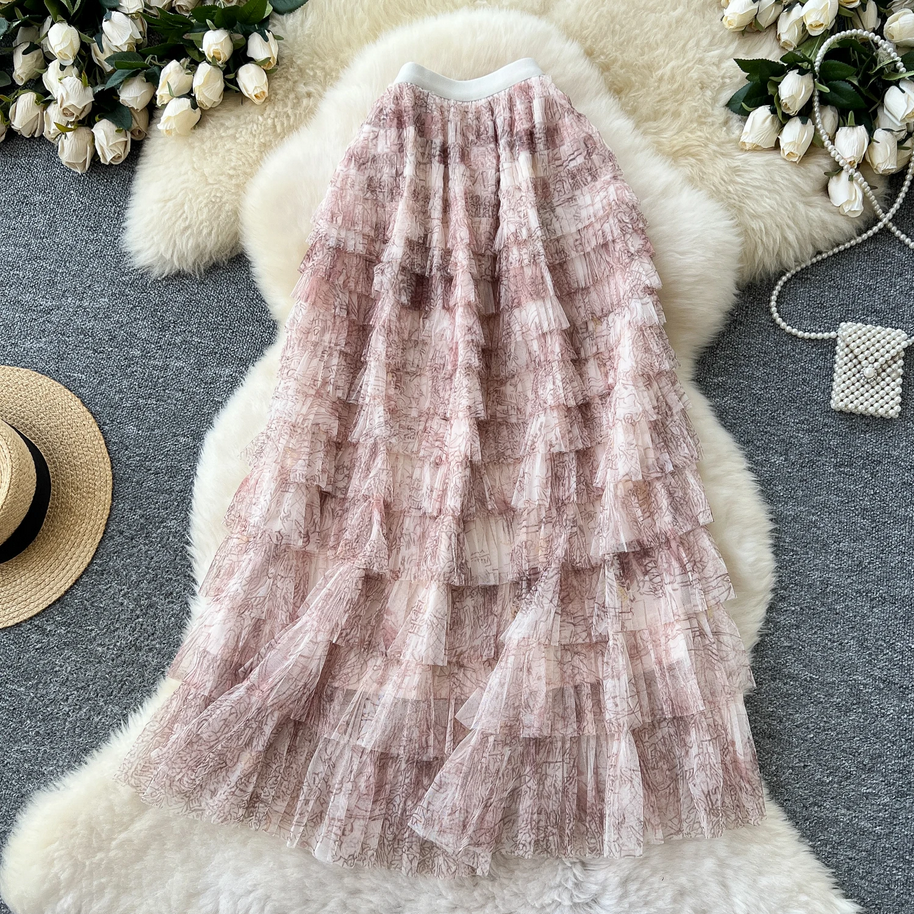 Fairycore Summer High Waist Elegant Layered Mesh Skirt