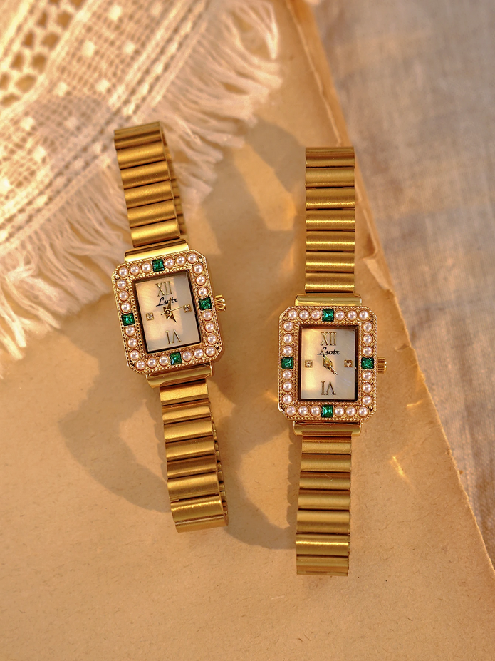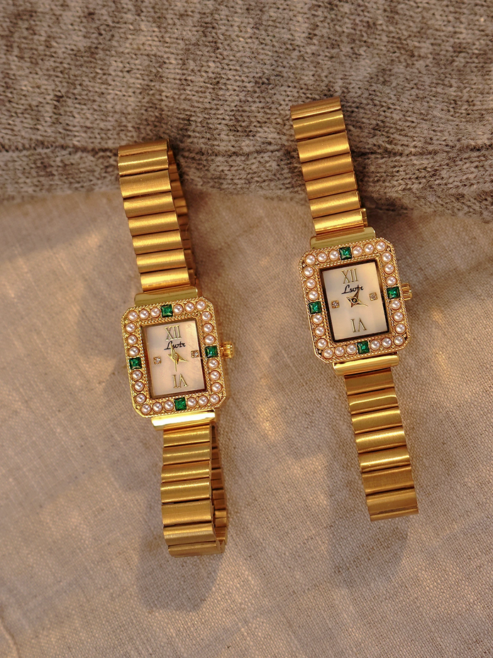 Fashionable Pearl Inlaid Quartz Watch for Women French Style