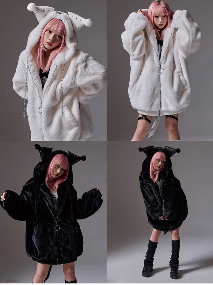 Wrap yourself in warmth and cuteness this winter with our Kawaii Oversized Faux Fur Coat. Designed in a fluffy white finish with a cozy hood, this coat combines comfort and playful charm. Its thick faux fur keeps you warm on chilly days, while the oversized fit makes it perfect for layering.