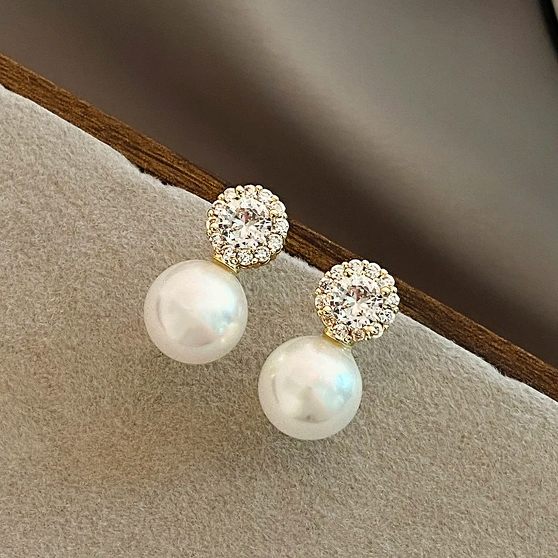 Add charm to your look with French romantic inlaid zircon round pearl earrings. Elegant, timeless, and perfect for weddings, dates, or everyday elegance.