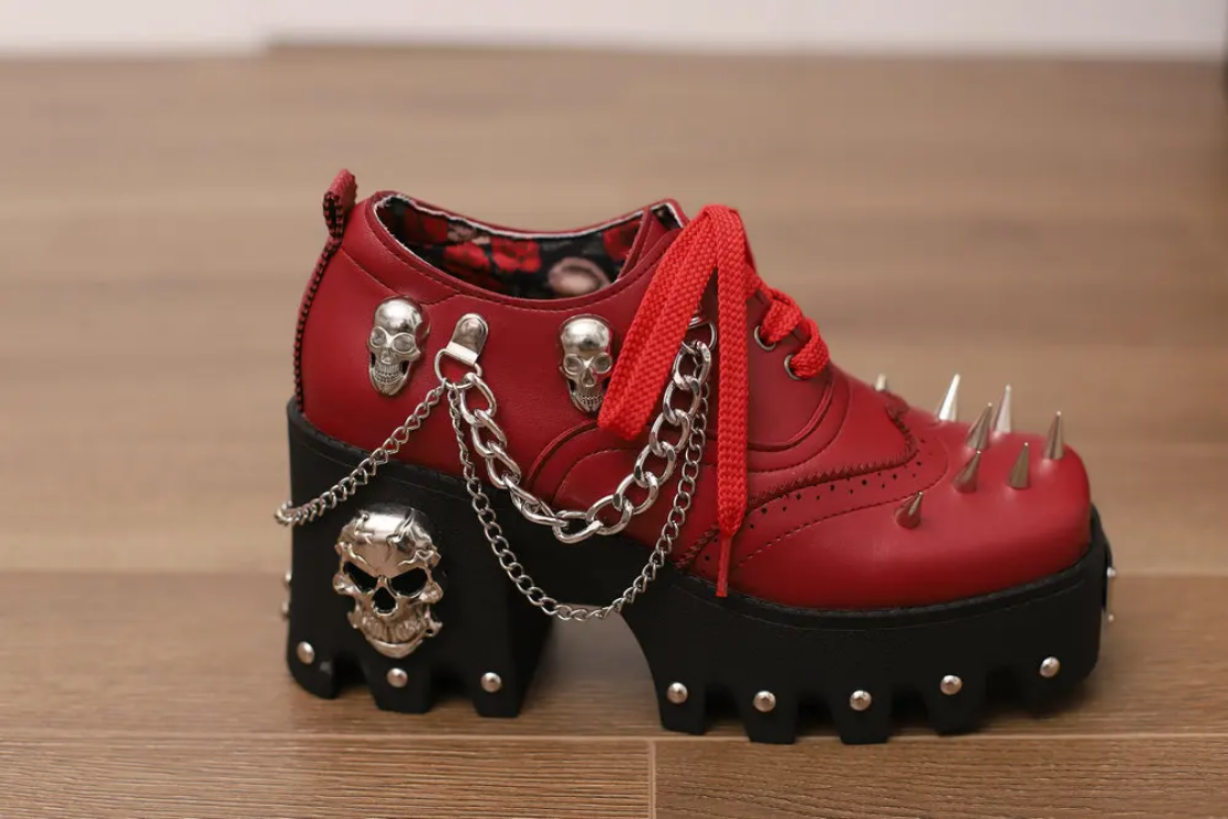 Goth Punk Skull Chain Leather Platform High Heel Shoes