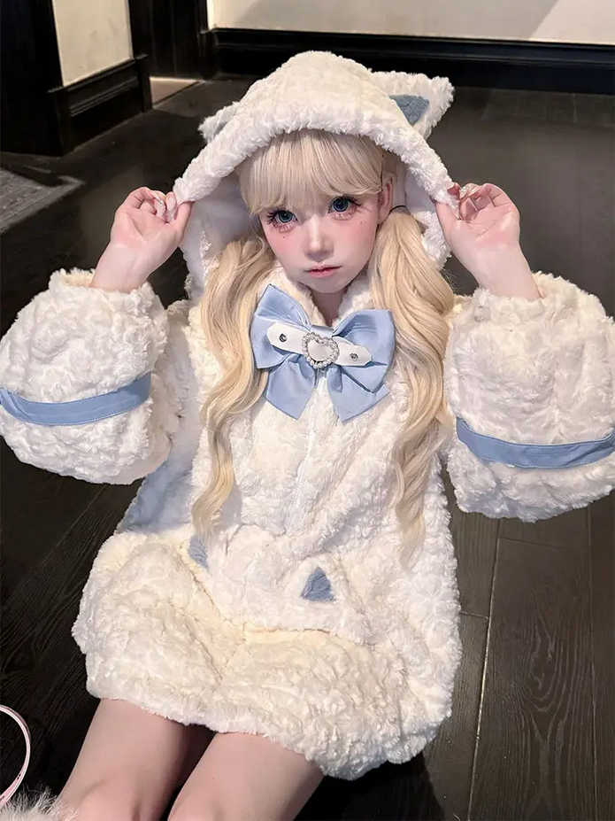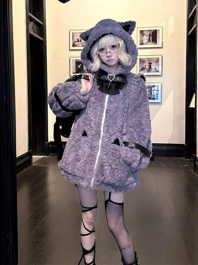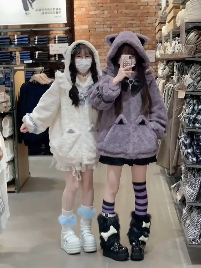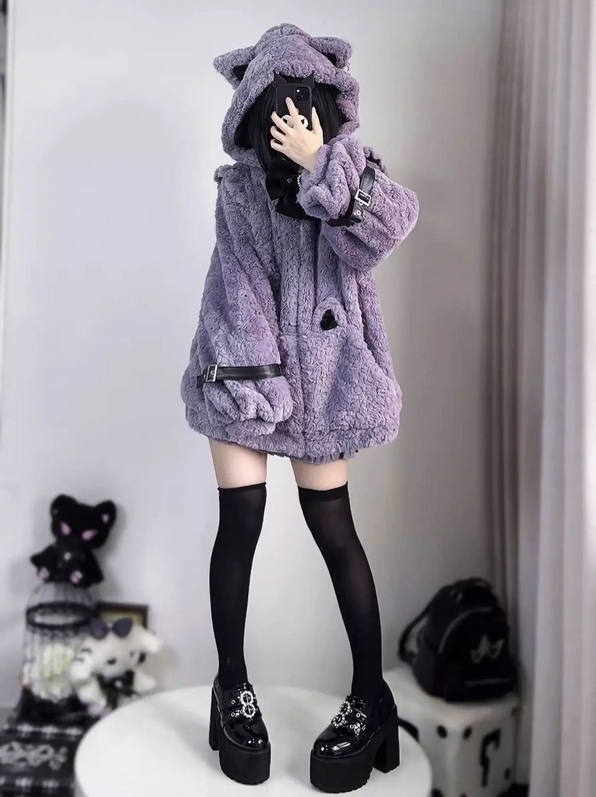 Japanese Kawaii Cat Ears Jacket Oversized Furry Hooded Warm Coat