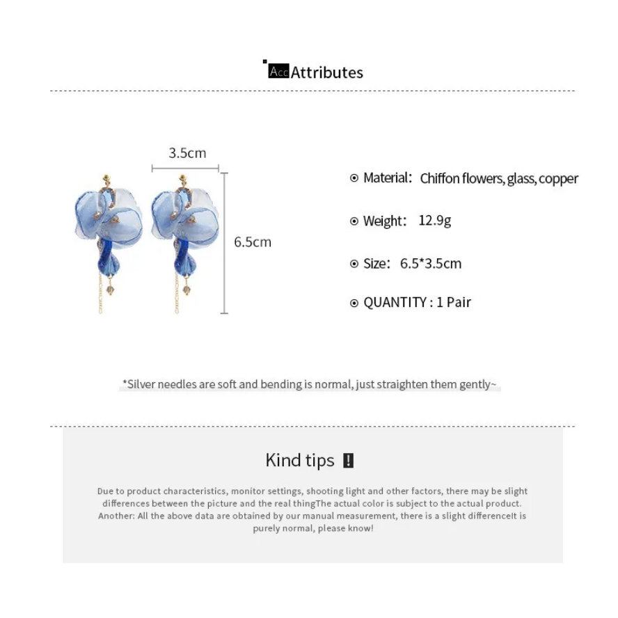Despite their statement-making appearance, these earrings are surprisingly comfortable and easy to wear. The fabric petals are soft and gentle, while the delicate chain adds just the right amount of sparkle without feeling heavy.