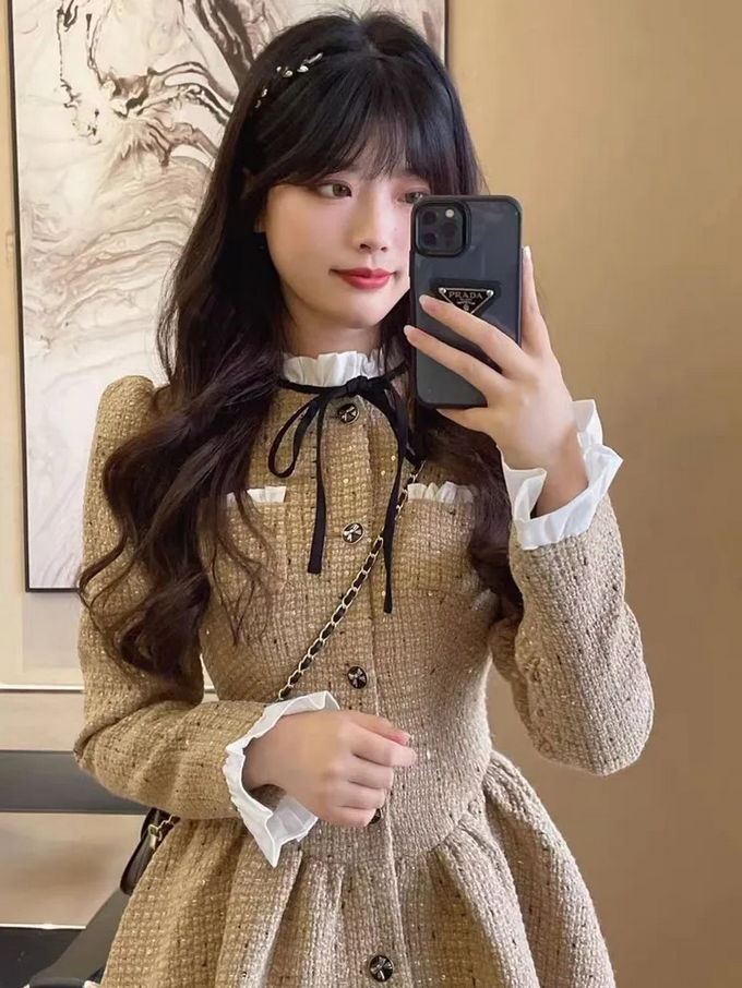 This coat is the epitome of sophisticated femininity, perfect for business meetings, formal events, gallery openings, afternoon tea, or any occasion that calls for polished elegance. The combination of structured tweed and delicate white ruffles creates a beautiful contrast that's both powerful and graceful. The gold tone adds warmth and luxury while the black bow provides a classic finishing touch. Pair with tailored trousers and pumps for business chic, or style over dresses for elegant layering.