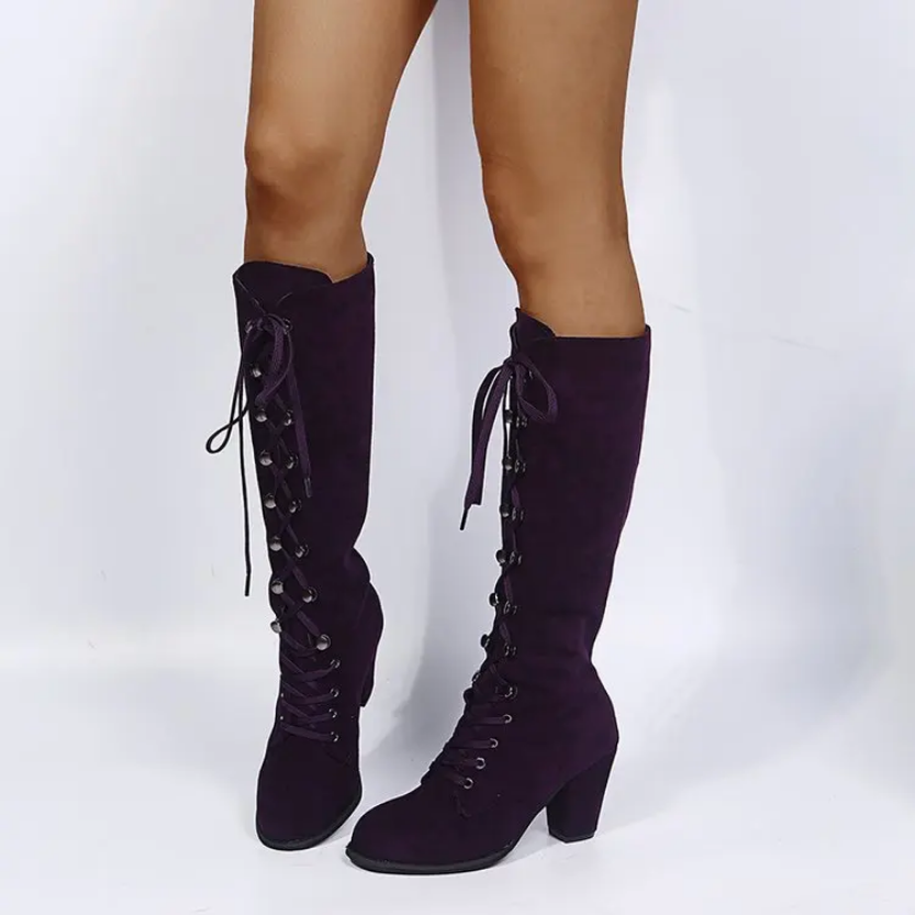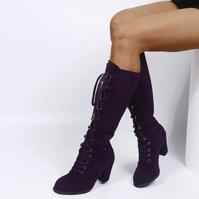 Step into bold elegance with these Purple Knee High Boots for women. Featuring a chic lace-up design, comfortable fit, and durable sole—perfect for autumn and winter fashion lovers who want to stand out in style.