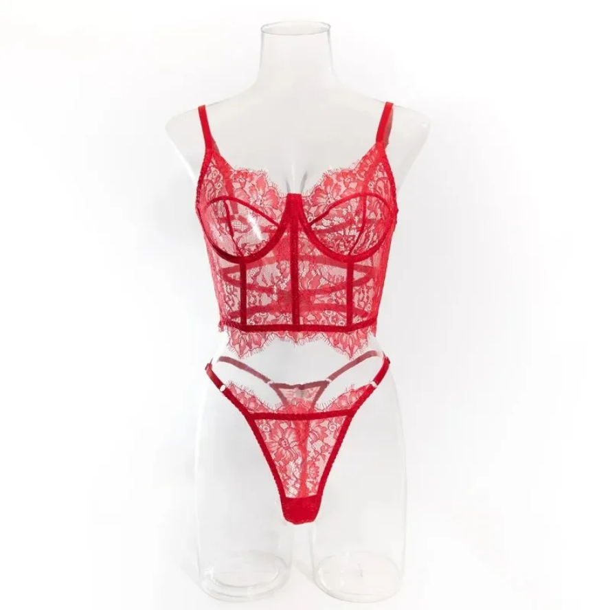 Experience seductive elegance with this stunning lingerie set featuring intricate black lace details, strappy bra design, and matching thong. Available in classic black and passionate red, this alluring set combines delicate lace craftsmanship with sexy strappy construction, designed to make you feel confident and beautiful whether for special romantic moments or whenever you want to feel irresistibly gorgeous.