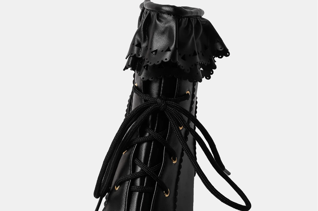Add a touch of sweetness to your look with these Kawaii Lolita Boots, inspired by Japanese Harajuku fashion. Featuring lace-up details, soft pastel tones, and platform soles — perfect for completing your cute, doll-like outfit with charm and style! 💕✨