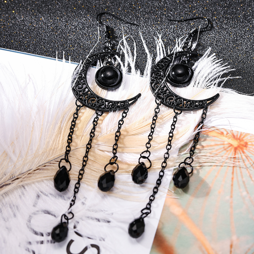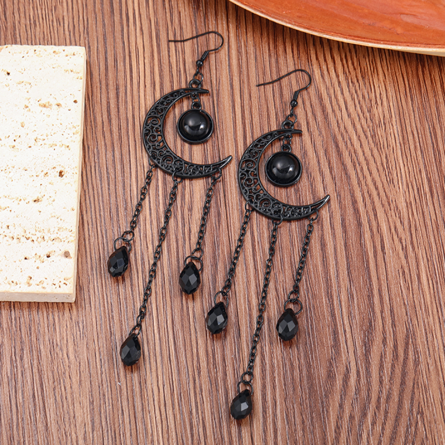 Embrace dark mysticism with these Vintage Gothic Vampire Witch Black Moon Earrings