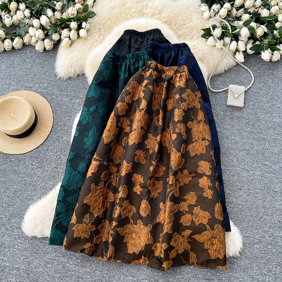 Women’s High Waist A-Line Skirt Floral Embroidery Casual Chic
