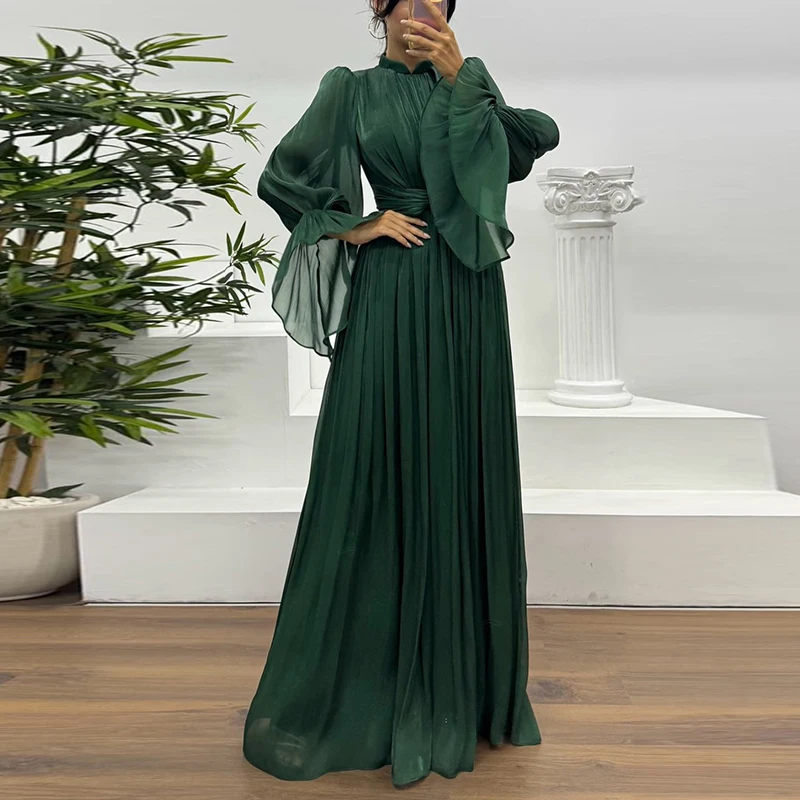 Step into timeless style with this 2025 Flare Sleeve High Waist Dress. Elegant solid color pleats make it the perfect choice for casual outings or evening events.