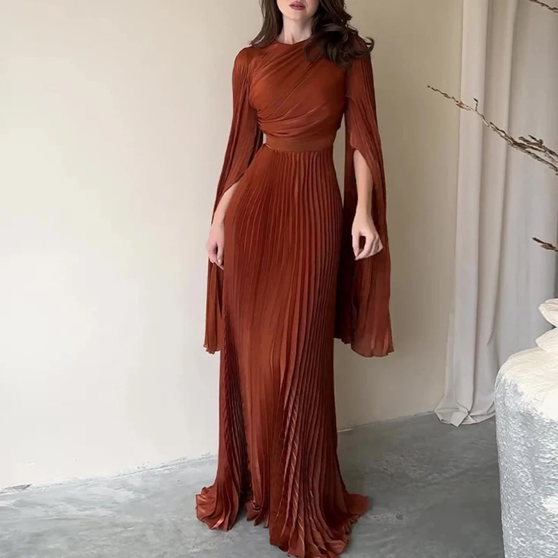 Grace meets style in this elegant flared sleeve fold dress, featuring a high-waisted fit, soft folds, and timeless charm – perfect for evening elegance.