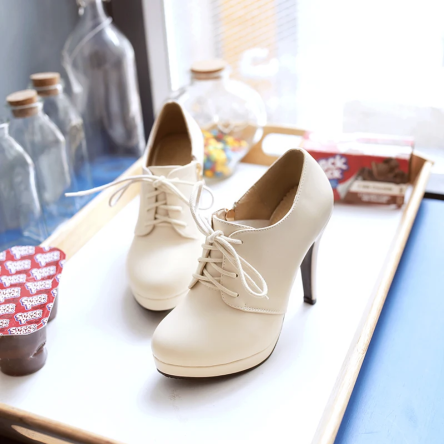 Step into elegance and confidence with these Women’s Lace Up Platform High Heels, combining vintage charm and modern height. Featuring chunky heels and a secure lace-up design, perfect for parties, gothic looks, or chic everyday wear. 👠💫