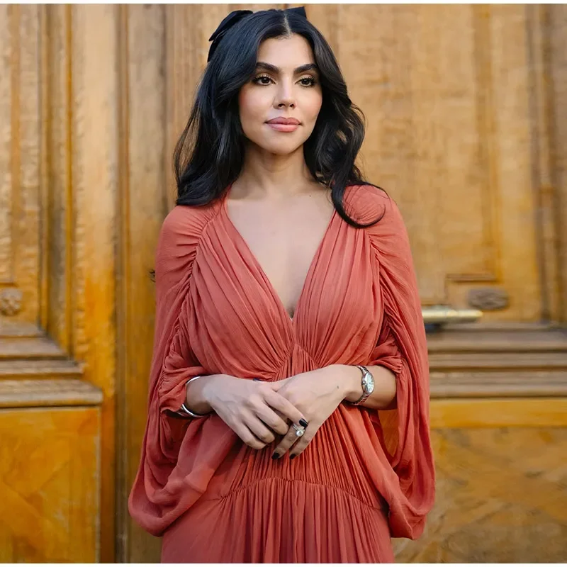 Bring effortless elegance to your wardrobe with our Casual Pleated Women’s Long Dress in Orange. Featuring a flattering V-neckline and flowy batwing sleeves, this dress combines comfort with style. The pleated design adds texture and sophistication while maintaining a relaxed fit.